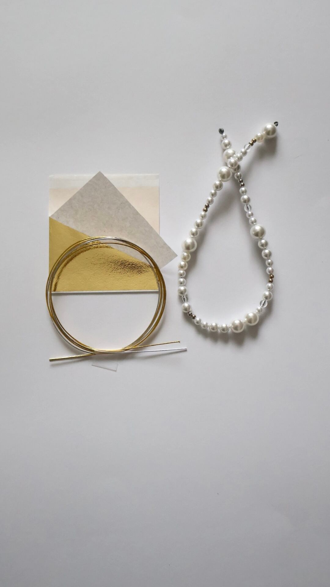 上品で華やかな印象を演出する、金箔or銀箔シート&水引&パールの髪飾りセット。